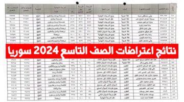 تاريخ النشر NOW “عااجل ظهرت الآن” نتائج اعتراضات الصف التاسع 2024 سوريا جميع المحافظات PDF عبر موقع نتيجة نت