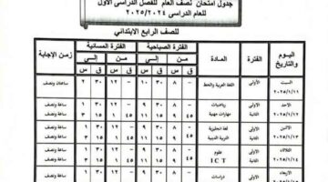 تاريخ النشر عاجل وهام: جدول امتحانات الصف الرابع الابتدائي 2024-2025 الترم الأول وفقًا لمديرية التربية