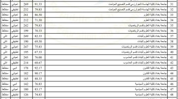 معدلات القبول في الجامعات العراقية لعام 2024 علي وادبي عموم الكليات