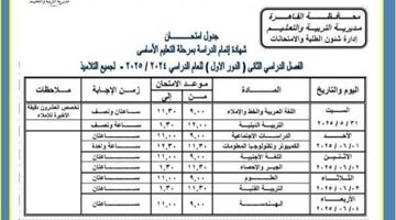رسمياً .. اعلان جدول امتحانات الصف الثالث الاعدادي الترم الثاني 2024 الشهادة الاعدادية في بعض المحافظات