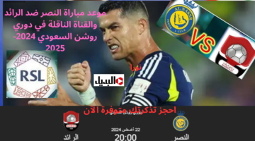 احجز تذكرتك متوفرة الآن.. موعد مباراة النصر ضد الرائد والقناة الناقلة في دوري روشن السعودي 2024-2025