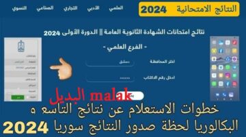 رابط الاستعلام عن نتائج البكالوريا سوريا الدورة الأولى 2024 بالاسم و رقم الاكتتاب