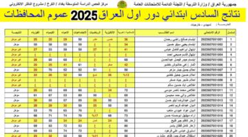 نتائج السادس الابتدائي 2025 في العراق الدور الاول كل المحافظــات موقع نتائجنا www.nataegna.net/ فور اعلانها من الوزارة